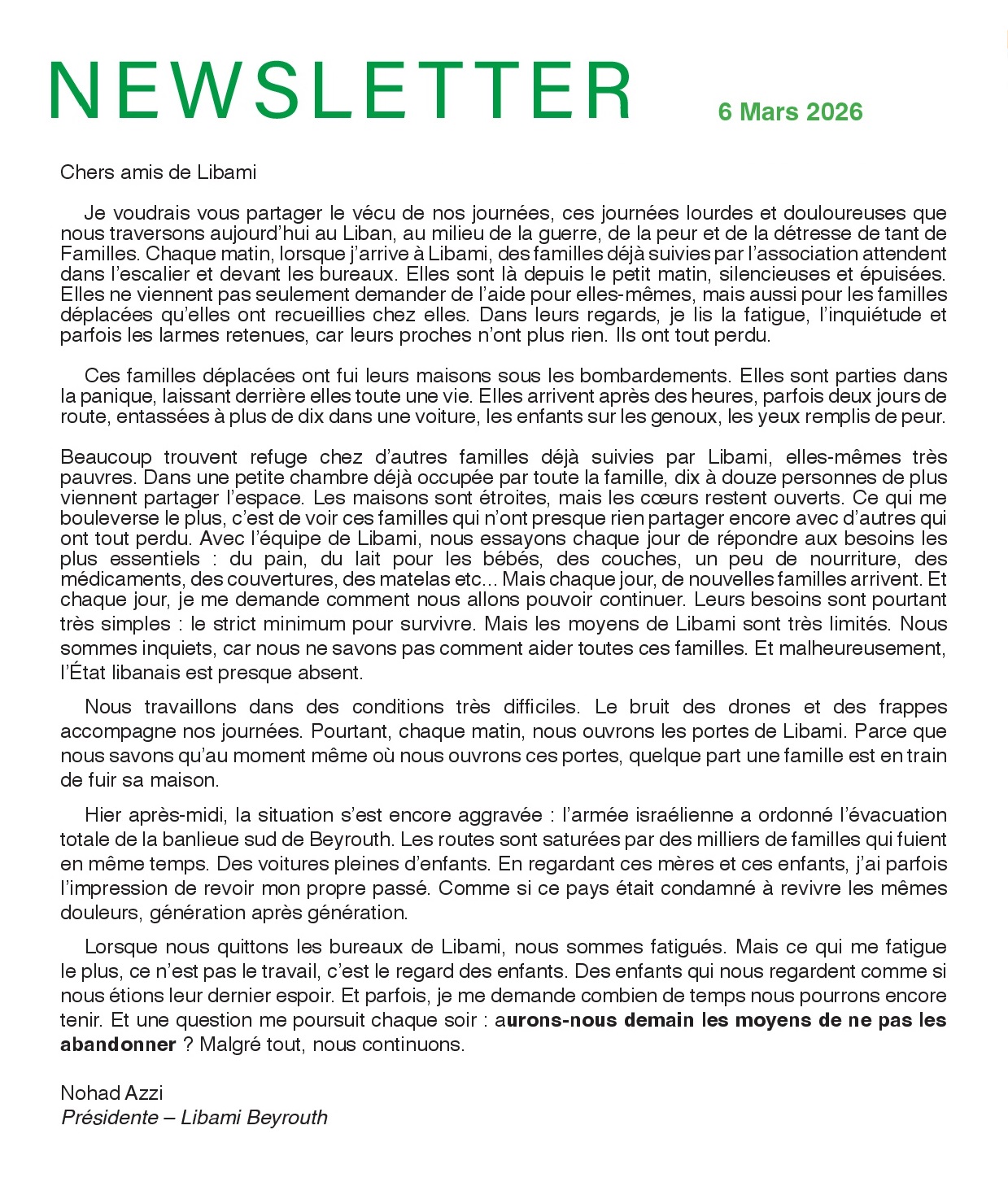 LIBAMI est une association loi 1901, présente à Beyrouth depuis 1986, qui vient en aide aux familles les plus pauvres du quartier de Nabaa.